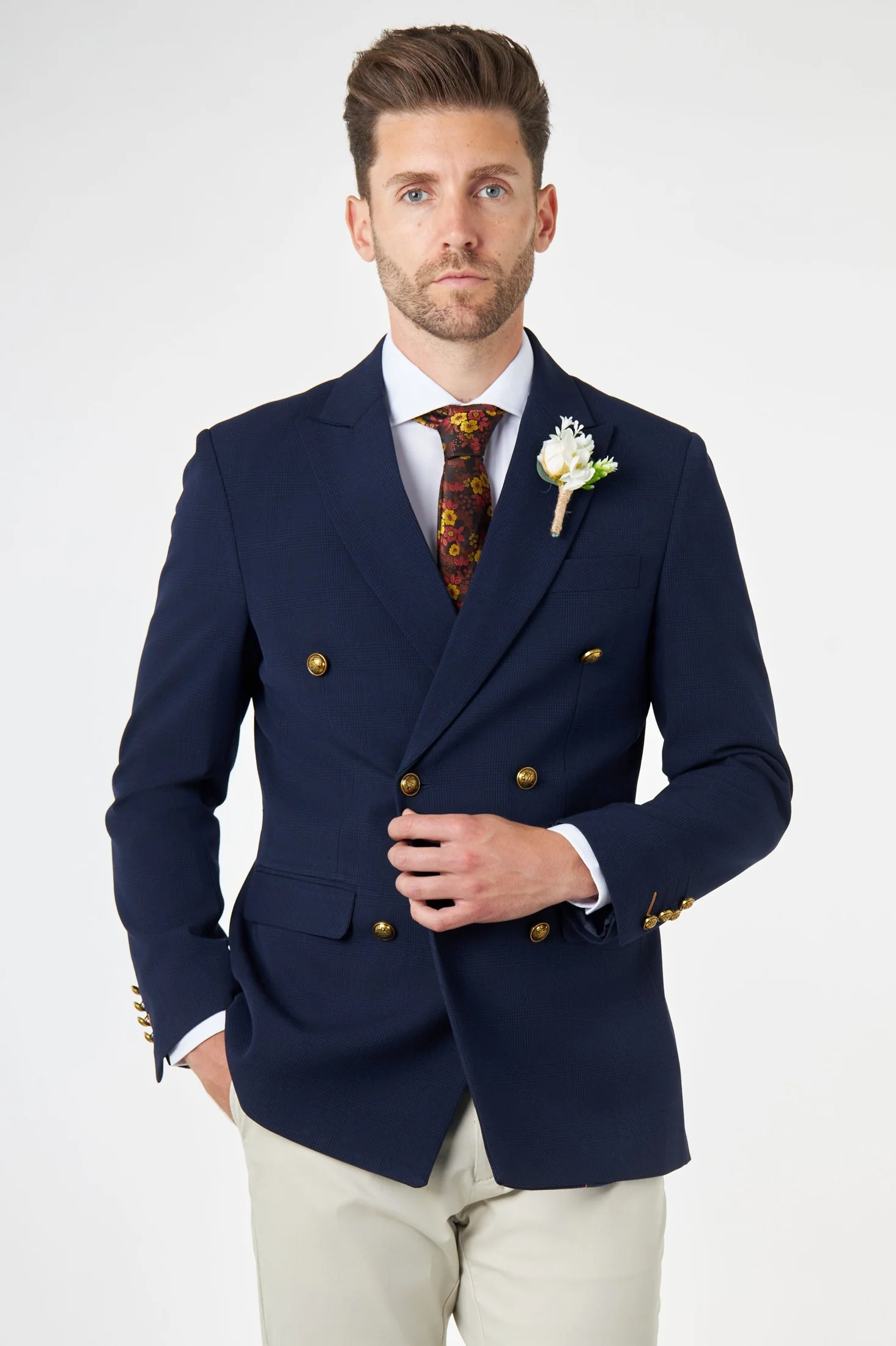 FINLEY – Navy Prince of Wales Check Double Breasted Jacket with Chino
