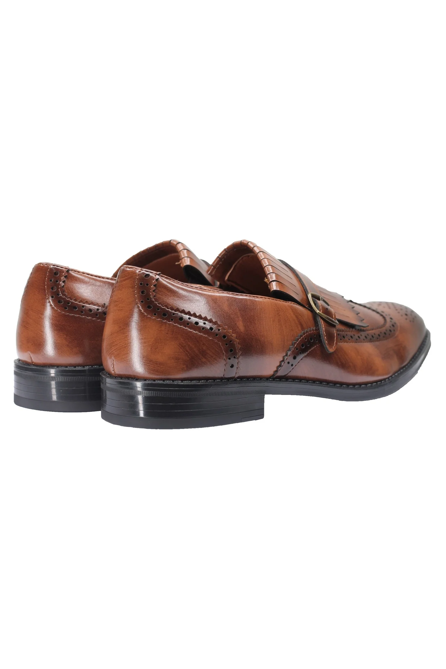 Features long American wingtip front with brogue detailing, working monk strap and kiltie on front