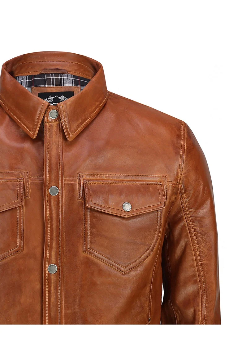 SHIRT TYPE LEATHER JACKET IN TIMBER