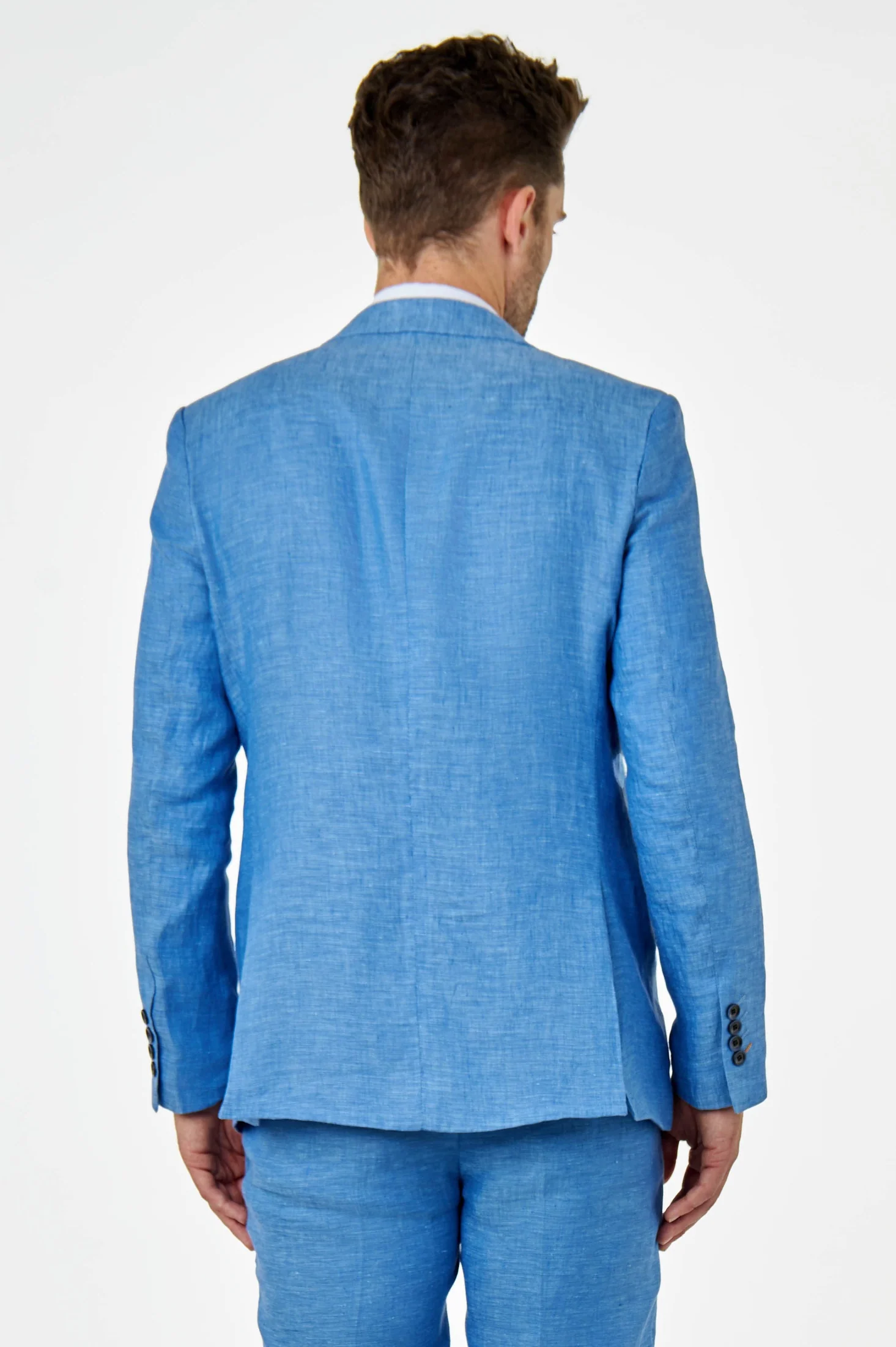 Mens Tailored Fit Pure Linen Light Blue Summer Suit - Lewis
